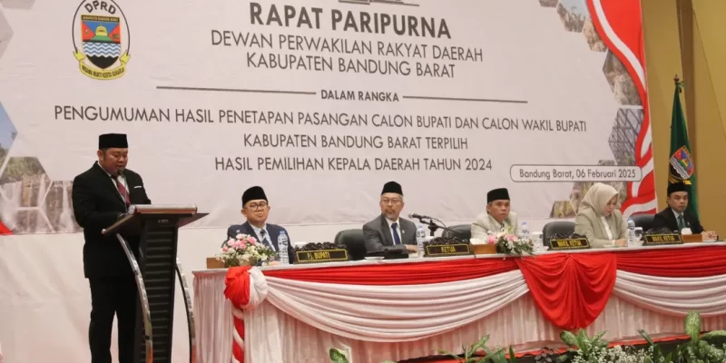Bandung Barat, – Dewan Perwakilan Rakyat Daerah (DPRD) Kabupaten Bandung Barat (KBB) menggelar Rapat Paripurna yang menjadi penutup rangkaian panjang proses Pilkada serentak 2024. Rapat yang diselenggarakan pada Kamis, 6 Februari 2025, ini secara resmi mengumumkan penetapan pasangan Jeje Ritchie Ismail dan Asep Ismail sebagai Bupati dan Wakil Bupati KBB terpilih.
